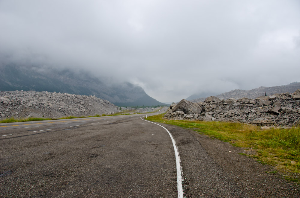 Crowsnest Pass was an interesting little town. It had seen better days as a mining town and seemed to be slowly dying. There were several cool abandoned buildings around that I was able to photograph. The next place was Frankslide. Here a 1 km thick piece of mountain had fallen off many years ago and covered part of the small mining town of Frank. I couldn’t really see the mountain due to the clouds, but it was kind of eery to drive through an area with many large chunks of rock all over the place and to know that at one time a town stood here.
