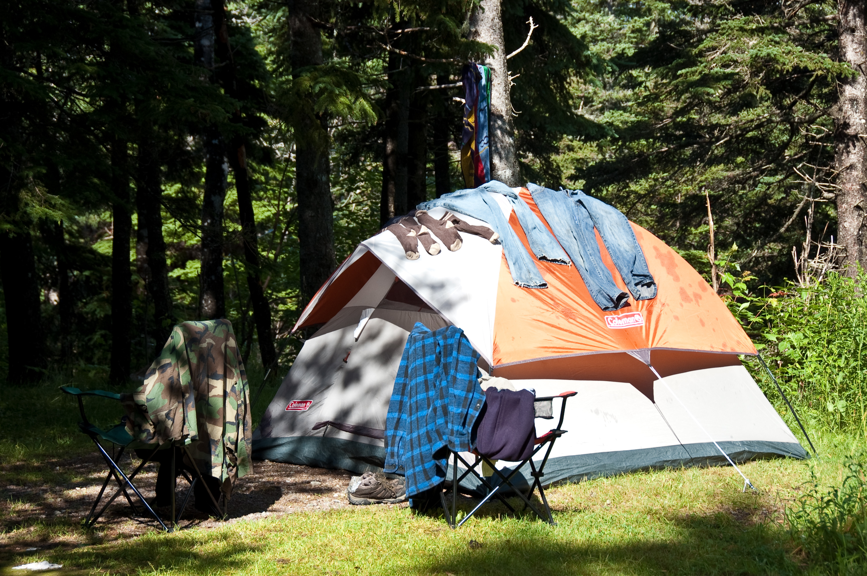 So imagine my surprise when my new coleman tent was basically waterproof. It had many chances to stand in the rain, and still be quite dry inside. One story that always sticks in my head was of a camping trip in Cape Breton. It started raining in the evening, as we went to sleep. It was still raining in the morning. We were scheduled to move to a different campground, so we took the tent down in the rain and threw it into the car, all crumpled up, without properly packing it up. That afternoon, we arrived at the next campground, and proceeded to set the tent up again….while it was still raining. We then went and did some sight seeing, returning to the tent after dinner…and it was still raining. It didn’t stop raining until sometime that night, and all the while, it was dry in the tent. Since then, I haven’t worried about rain when tenting.