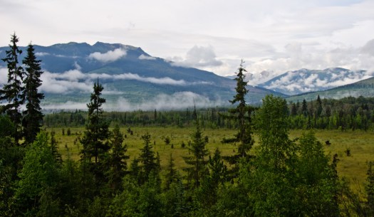 What a day! I woke up before my alarm this morning, because it was already getting bright out. I think that being up north is already affecting things plus I’m not used to the extra hour. Anyways, it was sort of cloudy and parts of the mountains were covered…it looked like it would clear up, but it was kind of thick. I took my time taking down the tent, and then decided to leave anyway in hopes that it would clear up. It didn’t at first, but then the clouds started clearing in a way that caused all the mountains to be wreathed with clouds. It looked amazing!