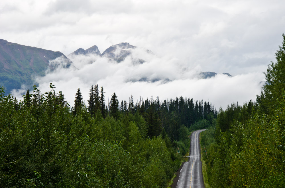 Then I set off. The first bit of the trip was just a repeat of the road that I drove in, and I just enjoyed the driving. Then I got to a part of the Cassiar that I hadn’t driven and started the turn north. I could sort of see mountains along the side of the road, in the distance, and there were a lot of places that I was pretty sure I was missing out on great mountains due to the clouds. I was a little disappointed that the clouds didn’t clear up much, although the rain let off a little and just spit every now and then. I stopped at one place, kind of considering just getting a motel room, but it was a lot more expensive than I wanted to spend, so I kept going.