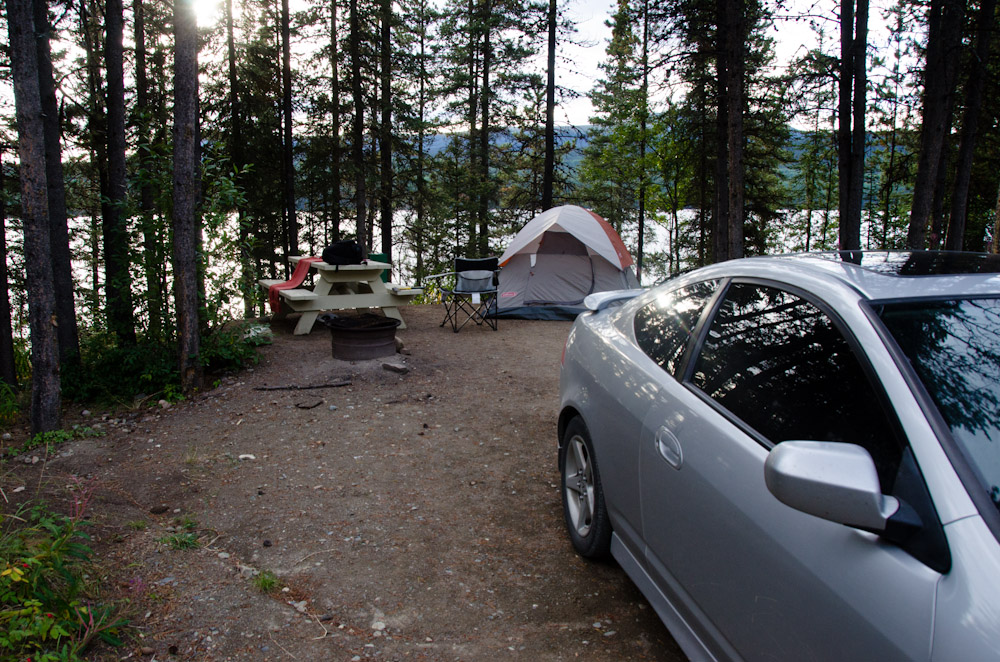 I bought some firewood this time and had a fire to cook dinner on. Near the end of the fire, it started to look dark out and the wind started blowing pretty hard. The rain began, so I retreated to my tent where I am now. I tried to look up the radar maps on the internet to see how big the storm was, but was informed that there are no radar stations near this location….not to mention that the internet here is satellite and is run by generator. I’m obviously a long way from civilization. The weather is supposed to be better tomorrow, so hopefully the drive to Telegraph Creek will happen then.