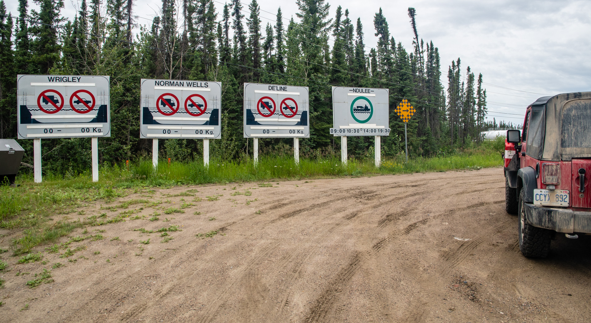 As I was driving I suddenly remembered, I had been told that the ferry runs until 10:30am, then stops until 2pm…and because I had started a bit later, I was going to be late for the ferry. So I sped up and tried to make it, but showed up 5 minutes past 10:30 and they were already shutting down. That was tough. My plans had completely fallen through. I had already driven an hour, and now if I wanted to continue on, I had to wait 3.5 hours! And then, the ferry’s last run was at 7:30pm. So I had 5.5 hours to see the road beyond, and that was if I pushed it. I had decided to make a day trip of it, so some of my supplies, including the tent were back in Fort Simpson. I simply had to make it back before the 730 ferry.