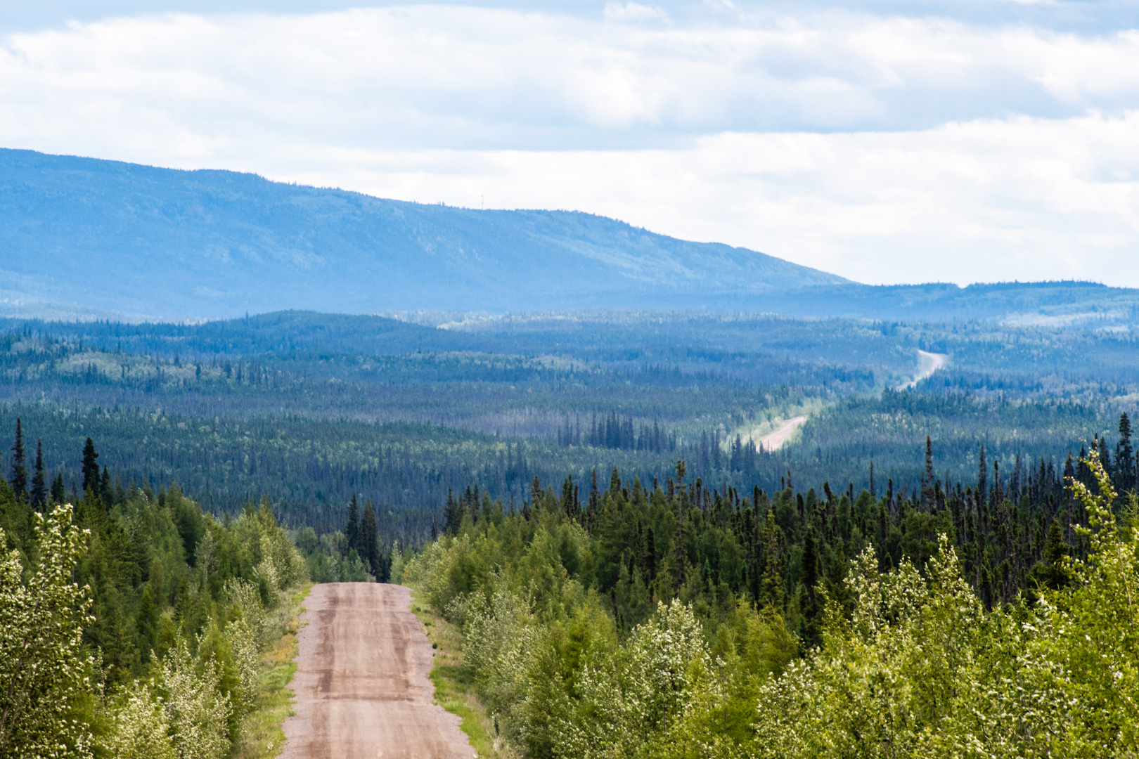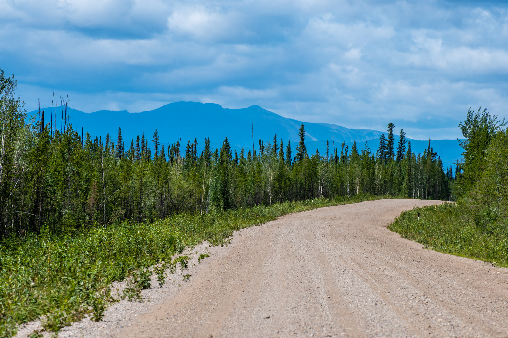 It was Sunday morning, so I took the morning slow and streamed the Sunday service from London. When that was done, I set out, ready for a relaxing afternoon cruising the Mackenzie Highway to Wrigley. The first 80km were typical highway for the area. Maybe a bit more up and down, but otherwise just trees, trees, trees.