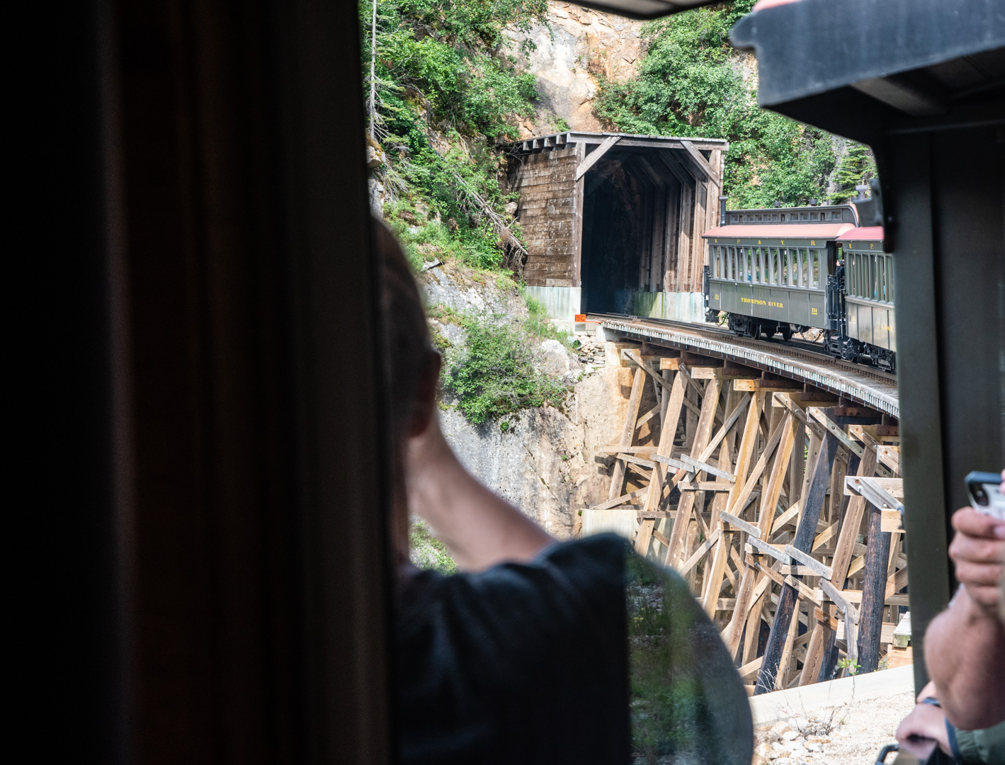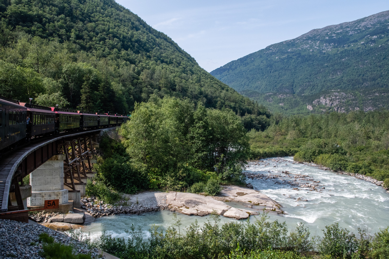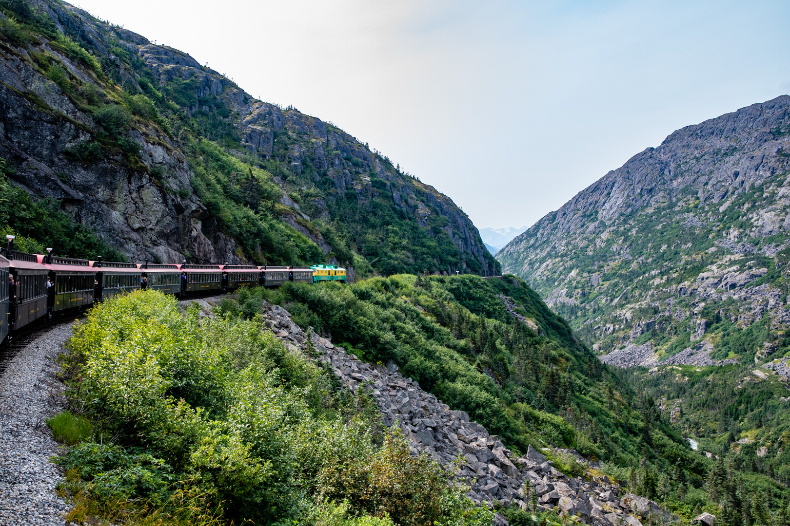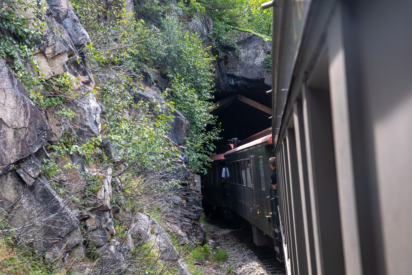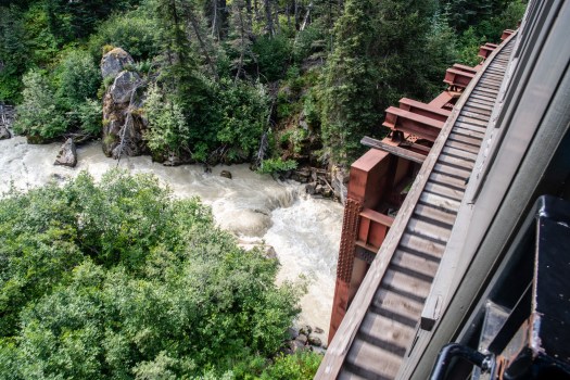 Yesterday I did something a little different. I rode the rails, Klondike style. My Jeep was in the shop getting the front axle seals replaced, so I was going to be without a vehicle for a chunk of time anyway. I arranged for a day trip down to Skagway, Alaska from Whitehorse. A portion of the trip, including the return was by bus…but I did get to ride the White Pass Railroad, which was built in the very early 1900s to access Yukon before the Alaska Highway existed.