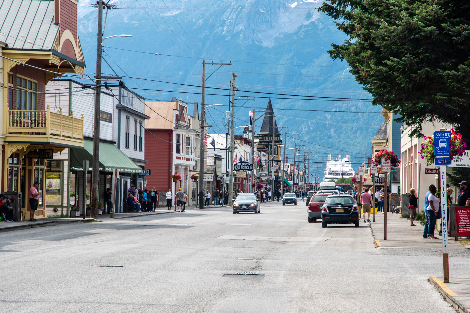 As the train came down the pass, we could see the channel at Skagway…and one of the cruise ships that was docked. It was kind of busy with lots of people, and there were a lot of people on the train. But in the end it was kind of nice, because the group of us on that bus were together on the train and we kind of got to know each other a bit during the journey.