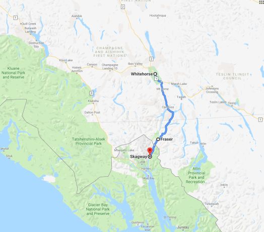The rails more or less follow the path of the current road…which is highlighted in the map. For this journey I took a bus from Whitehorse to Fraser(which is in BC) and rode the train to Skagway(in Alaska). The portion from Fraser goes up to the summit of the area and then comes down through the pass into Skagway. It was a great trip.