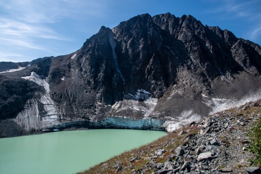 The views up top were amazing. Surrounded by mountains. I went for a short hike up to get a better view and to see the small glacial lake. The ice from the glacier was crackling loudly. I sat in a few spots for a while and just took in this wondrous bit of God’s glorious creation. It was nice and quiet too. Just a light breeze blowing and the sun shining. A perfect day…and here I was driving in the mountains with the top down. What a blessing.