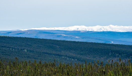 I started the day off still in the plains area beyond the Ogilvie Mountains. At this point there were plenty of trees again. The mountains in the distance were ever moving closer. The road was still quite rough, so it was slow going.
