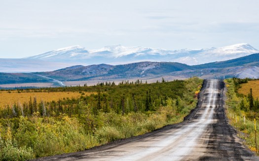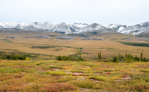 From the circle on, the Dempster followed along the side of the mountains through a vast plain. This was the most breath taking part of the journey. The colours were amazing and the vastness was beyond imagination. The trees still stuck around, but were more random and stunted. I took a ton of pictures…