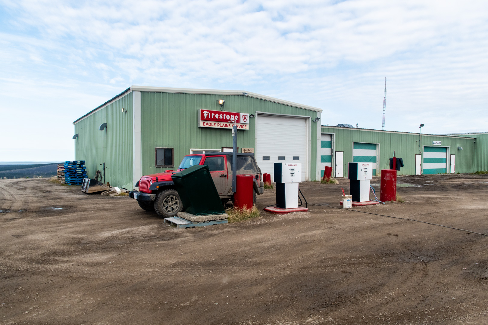 I stopped for gas at Eagle Plains, the first real sign of civilization since Tombstone…over 300 km ago. There is a small lodge there, plus the gas station. I should mention that while the road is generally quiet, there are other tourists driving it, so while there isn’t any kind of actual traffic, you do see other vehicles somewhat regularly.