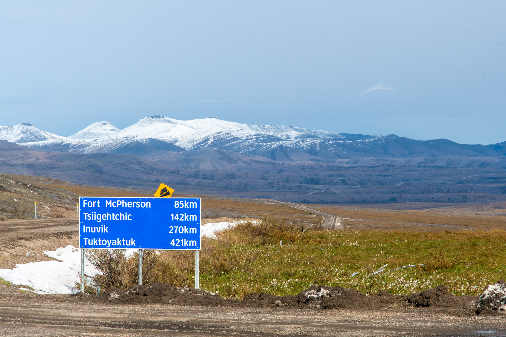 At the top of the pass was the border with Northwest Territories. For some reason the road became a lot smoother then too. It wouldn’t last, but it was nice. There are several communities along the road in NWT, so the road was less remote from then on…but getting ever further north.