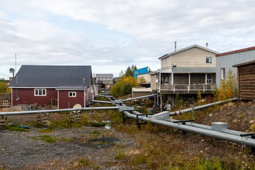 I arrived in Inuvik that afternoon and decided to stay the night rather than push through to Tuk the same day. So I had some time to wander through Inuvik and experience it a bit. It is interesting at this point that because of the permafrost, all buildings are built on stilts to keep the heat away from the ground. Even the big buildings are on stilts. Also, all the towns utilities are above ground and come to each building via set of pipes that run behind everything…all over the city.