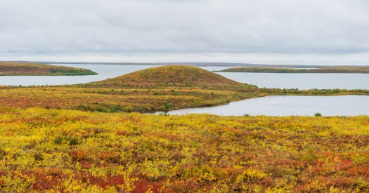 Another feature that started showing up were Pingos. They are rounded mounds of ice covered in ground cover…some are quite large. They form from lakes that drain and then freeze underneath, causing a mound of ice to heave upward. I can’t say I fully understand the process…but it is a truly unique land form that you can only see by road here in Canada.