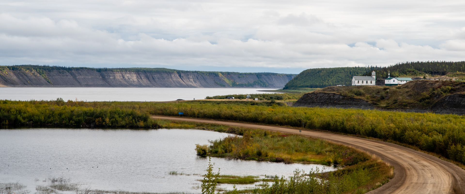 As the road approached Tsiigehtchic, I was treated to a wonderful view of the Mackenzie River, with the edge of the town above. The image below has an incredible amount of depth in it. Those cliffs are pretty big.