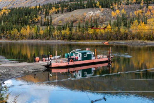 Then there’s the Pelly Barge. The smallest ferry I’ve been on yet. It had a wooden deck, wooden ramps, and that small black box next to the control hut is the engine that pulls the barge along the cable that is stretched across the river.