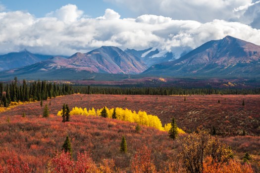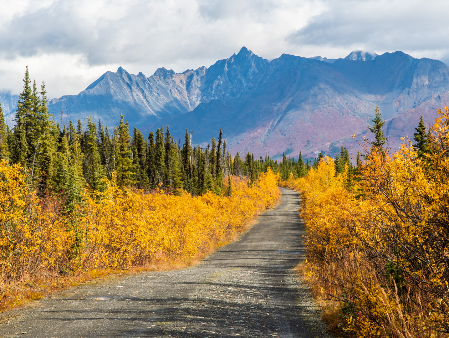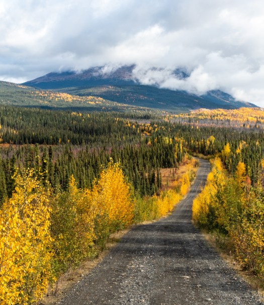 The fall colors were in full bloom, which for most of the road meant brilliant yellows. The first part of the road is kind of a build up for what’s to come. The colors were awesome, but the views were often few. It actually reminded me of old logging roads in Northern Ontario. Slowly the views gained size. But seriously, the first 130 km are long.