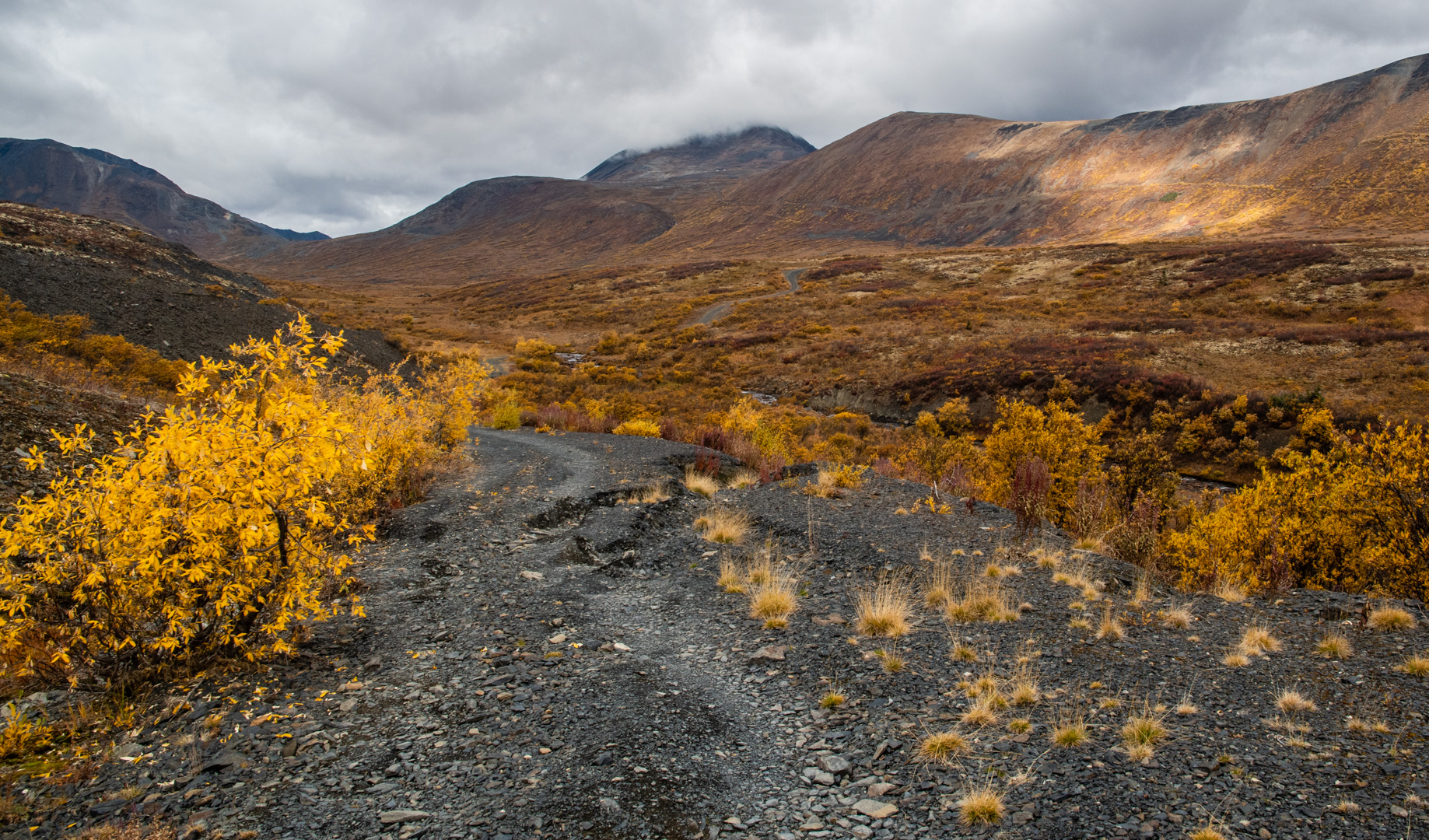 I’ll admit, the clouds were skimming the mountains and it just had that end of the road feel to it. But it just wasn’t what I was hoping for. As I turned around, I remembered seeing a turn off just past the border for the Mactung mine. It’s been closed for a while, and the road looked like not many people drive it. But it was smooth and looked like it might go somewhere interesting, so I headed out.
