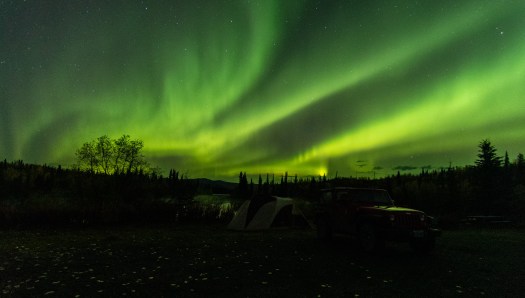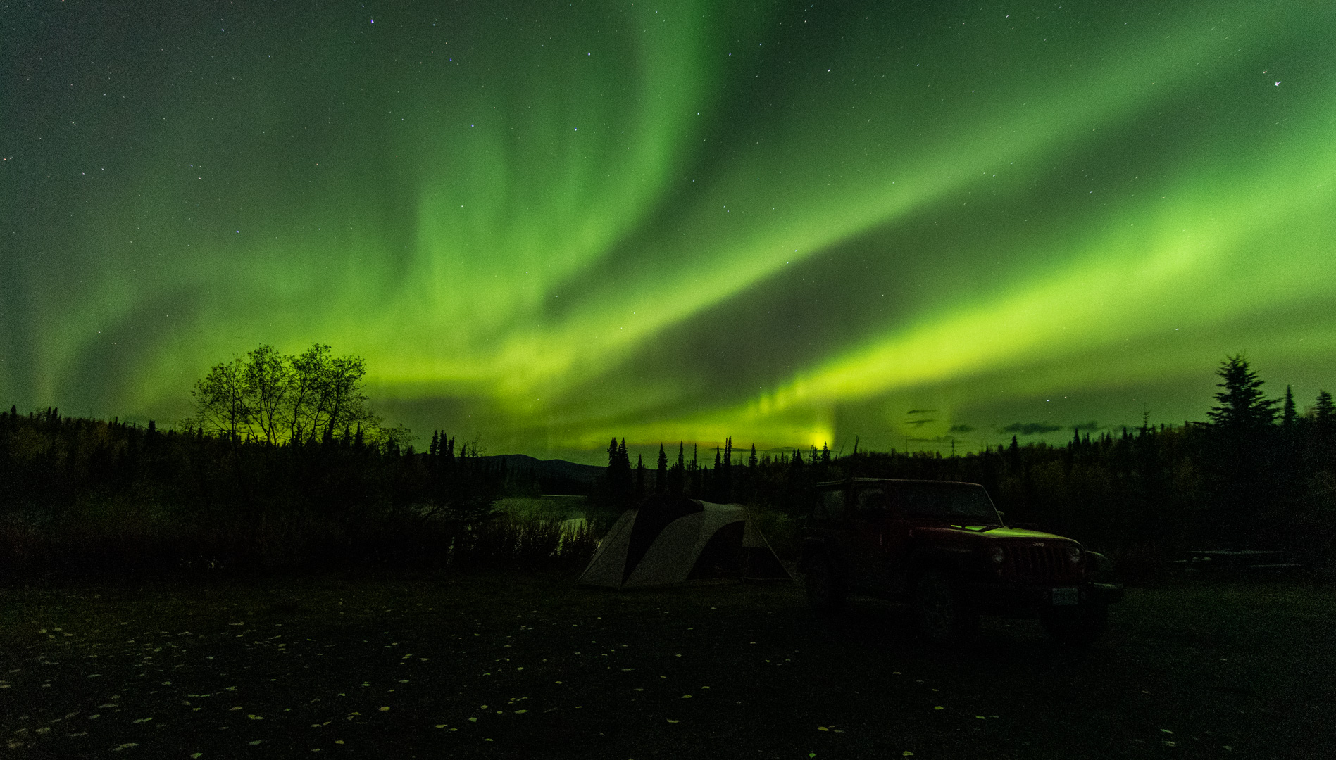 I wasn’t going to make it all the way back to Ross River in one day so I headed for a spot I had seen on the way in. There were two other guys there already. Fellow travelers with more experience than myself. We sat around the campfire that evening swapping stories. The one guy was staying up for the northern lights, so I joined him.