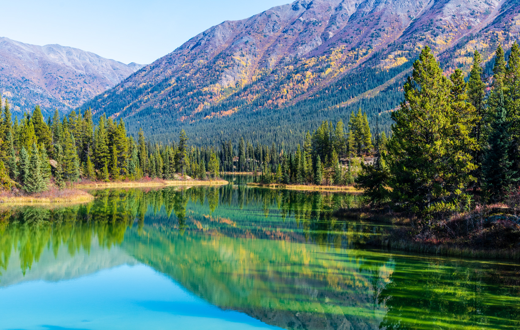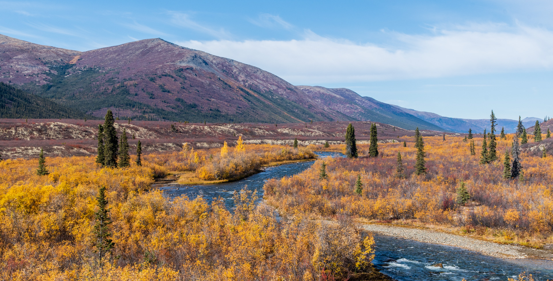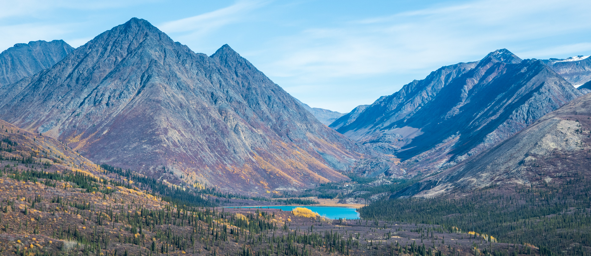 The beginning of the road is a nice drive, with the mountains slowly getting bigger. Unfortunately the colours were a bit muted compared with my previous days. I had missed peak colours here. In some ways I wish I had driven this road and then Canol…to keep my standard attempt at doing the best last. But I’m sure if I had done that I would have missed peak colours on Canol, so I’m glad it worked the way it did.