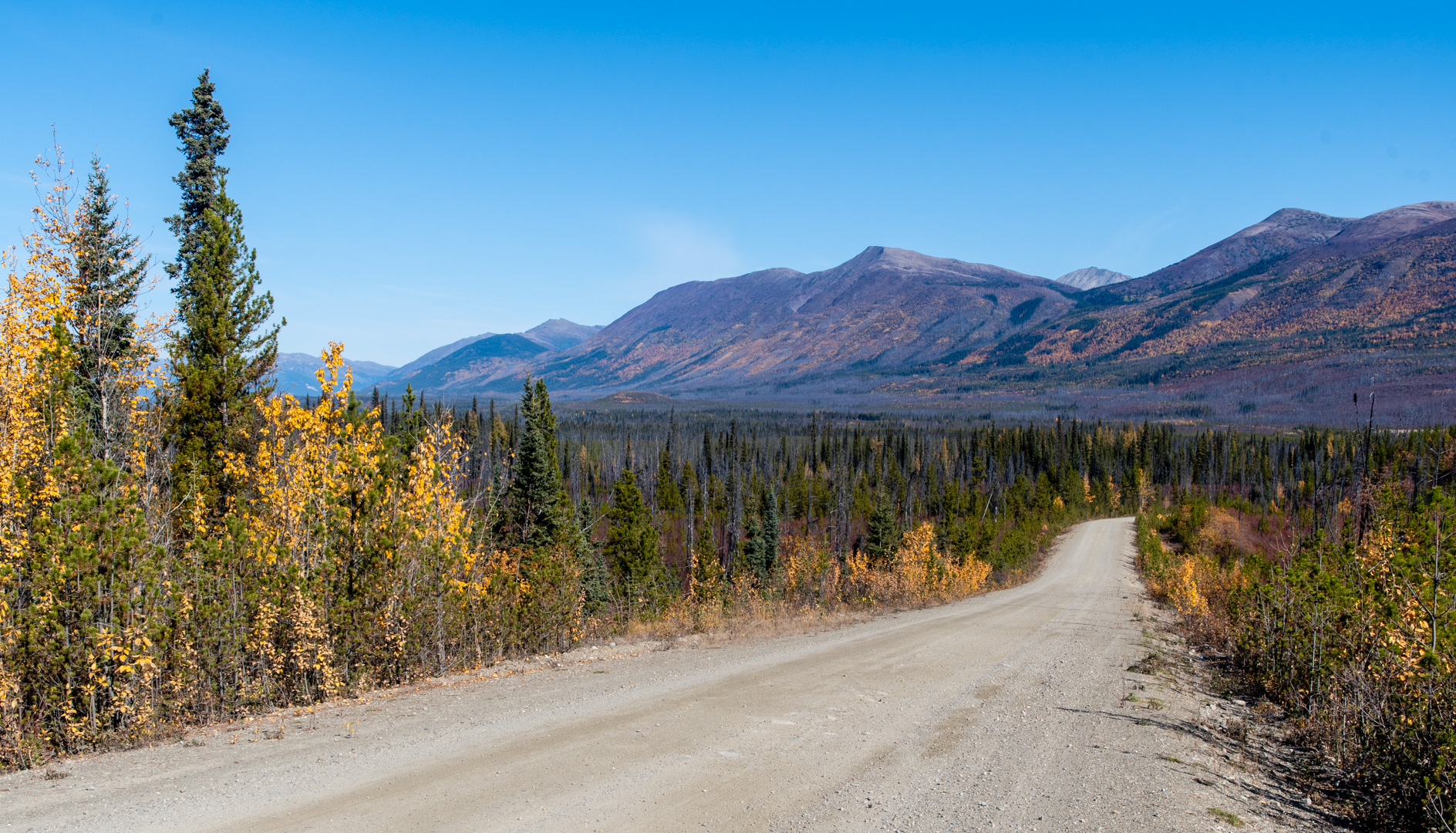 Hey Chris. I was on Nahanni Range Road September 7-9. From talking to locals, I gather fall was maybe a bit early that year. I didn’t see any porcupines on Nahanni, but I did see a bunch on the North Canol…while I was driving, never while camping. North Canol was a much smaller, rougher road, which gave more of a feeling of remoteness. I enjoy the feeling of driving down roads like that. The scenery is similar. It probably helped that the colours were much better when I was on it. Currently Nahanni is a pretty standard gravel road with some steep hills. There is a lot of talk of it getting upgraded for mining exploration in the next year or two so you might want to check it out sooner rather than later.