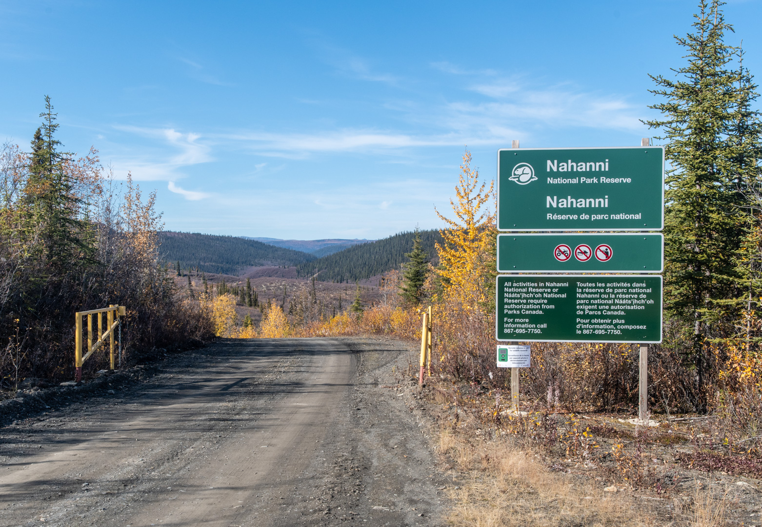 Then I came to the gate. In my research, I had seen hints that the road went through Nahanni Park, but again, info wasn’t easy to find online. I didn’t have a park permit so this was the end of the exploration. I’ll admit, I considered just driving in anyway…but it later turned out to be the right decision to turn around.