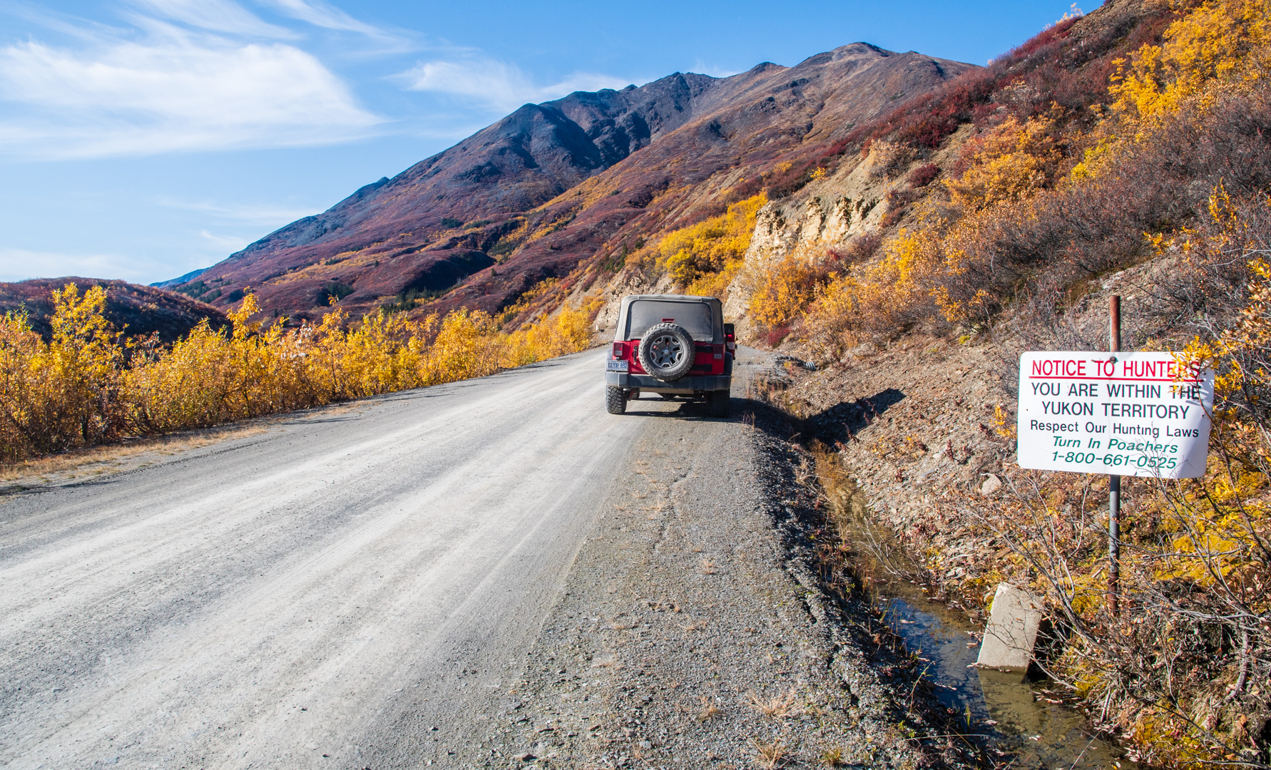 As you can see, there actually is some warning about what you are getting into at the beginning of this road. The fun part is, compared with the North Canol, this was actually a smooth, relaxing drive. And I don’t know why they say it’s narrow. It’s not. It’s a pretty standard gravel road…or maybe I just got used to how seriously narrow the North Canol is.