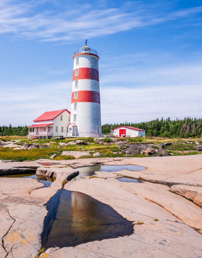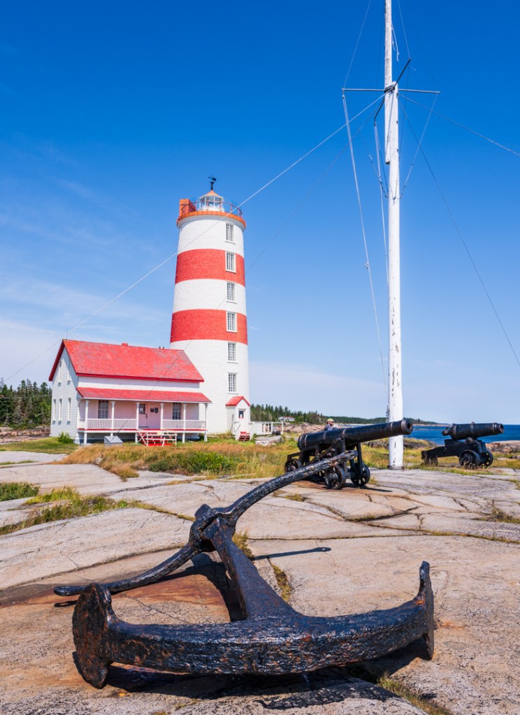 I was scanning ahead on google maps, and there was a spot where the main road went inland, but there was a road to the coast, a place called Pointe-des-Monts. As I drove it, the road wasn’t the most interesting, but it went by some cottages along the water. Then in the distance I saw a lighthouse. Google maps had a hotel icon on the lighthouse, so I hadn’t realized it was even there. Apparently at one time there was a bed and breakfast at the lighthouse, but now it’s a museum.