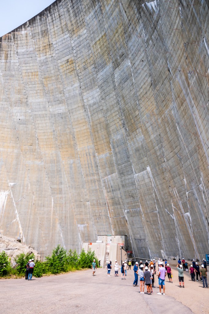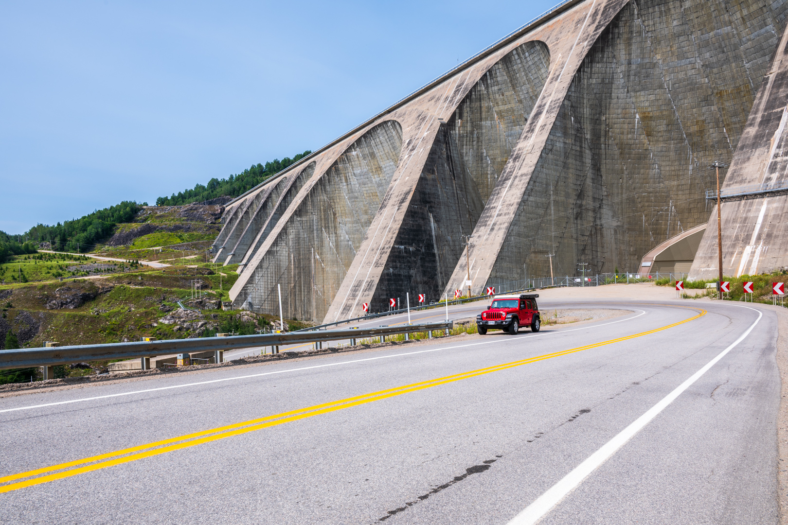 Manic-5 is a sight to behold! The dam stretches across the view and fills the windshield as the highway actually drives right up to it before switch-backing up and around. It’s 702 feet high(541 feet from ground level) at its tallest point, making it the highest buttress style dam in the world.