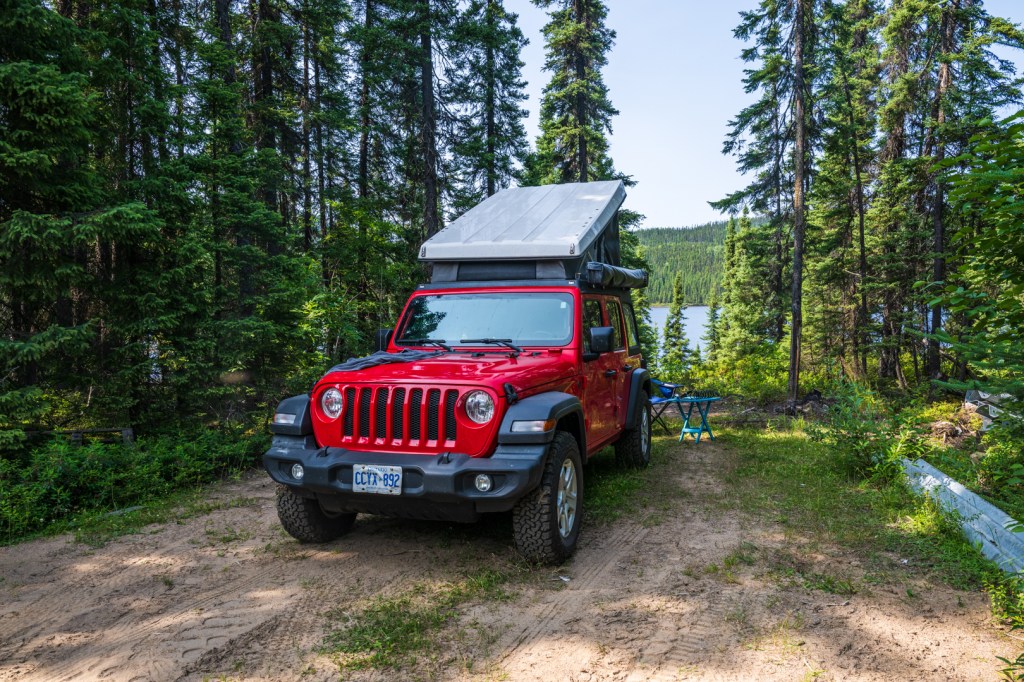 I decided to push on and make it closer to Churchill Falls for the next chapter. That night was in a gravel parking lot by a river(that I couldn’t see through the trees). Wild camping in the Jeep isn’t always at glamourous locations, but it’s not like there was a campground option either.