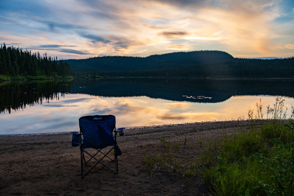 After the dam I started looking for a place to camp, ending up at a small spot just off the highway. It wasn’t a glamourous spot, but there was a view of a small lake, and a path down to the shore. It looked like hunters probably used the spot as an access point for ATVs.